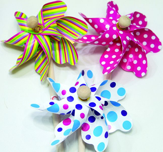 9. Windrad auf Holzstab Ø18x38cm PP 3 fach